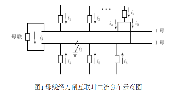 b.某一單元倒閘過程中,兩把刀閘都已閉合,而保護裝置沒有切換入互聯狀態。由于此時兩條母線槽已經將兩把刀閘連在一起,部分電流流過刀閘而不經過母聯TA,如果仍然判分差電流選擇切除母線槽,將降低保護靈敏度或延長故障切除時間。
