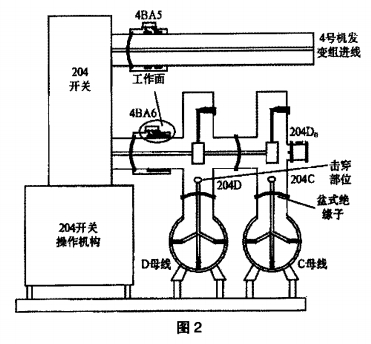 12月6日對電流互感器4BA6B相進行檢查處理,票中的安全辦法有斷開204開關(guān),拉開204C刀閘、204D刀閘,合204DO地刀等。12月7日,檢修持票將該間隔4BA6B相氣窒內(nèi)SF6氣體抽至零表壓后(該氣室內(nèi)還有1個大氣壓的 SF6氣體)。翻開B相氣室端蓋,對斷線進行處理后回裝好端蓋,在對氣室抽真空時,報“220kVo母線槽復(fù)合電壓動作",“220kVD母線槽保護動作”,聯(lián)接于D母線槽上的悉數(shù)電氣元件悉數(shù)跳閘,D母線槽失壓。