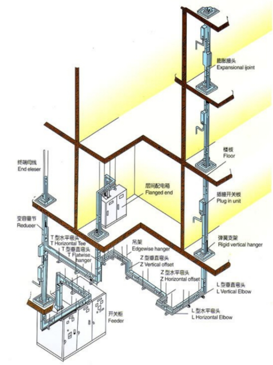 前端母線,為電源引入單元,可直接與變壓器或低壓配電屏聯接。變容量節,為母線改換容量時的過渡節。